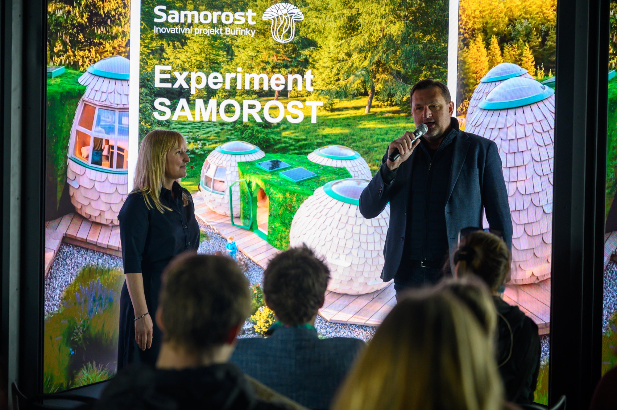 Součástí roadshow byl i projekt SAMOROST. Experimentální dům z mykokompozitu, který jsme vnímali jako přirozené pokračování debaty o bydlení. Pokud řešíme, jak rekonstruovat chytře a úsporně, je logické ptát se i na to, z jakých materiálů budeme stavět. Je totiž zásadní, aby byly v souladu s udržitelnými nároky, které nám ukládá legislativa a dovoluje příroda.SAMOROST s námi cestoval všemi městy formou přednášek, do Prostějova, Českých Budějovic, Jihlavy, Pardubic a Prahy zavítal i fyzicky. Byl lákadlem nejen pro lidi z oboru, tedy stavitele a architekty, ale také pro nadšence inovací a udržitelného přístupu ke světu, i pro lidi zcela nezasvěcené. Okouzlil svým tvarem, nápaditým interiérem, ale hlavně materiálem, ze kterého je vyroben. A to byl také náš cíl, seznámit širokou veřejnost s mykokompozitem.